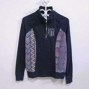 Victoria's Secret LOVE PINK Black Half Zip Sweatshirt Sweater Size XS