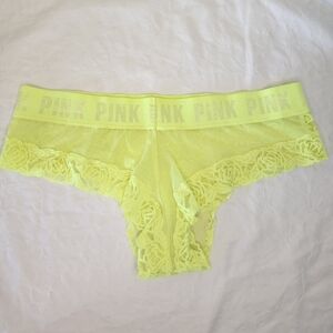 Neon Yellow Floral Lace Cheeky Style Panty with thich stretch Band, Pink by Victoria's Secret.