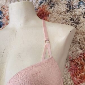 Victoria's Secret pink lace front closure racerback bra. Strappy lace back detail. Thick Push-Up padding.
