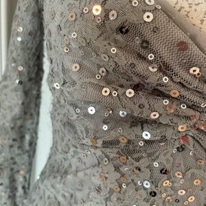 Step into the spotlight with this Moda International (by Victoria’s Secret) Secret Silver Lace and Sequin Dress – where elegance meets comfort in a mesmerizing dance of allure! 🌟