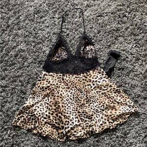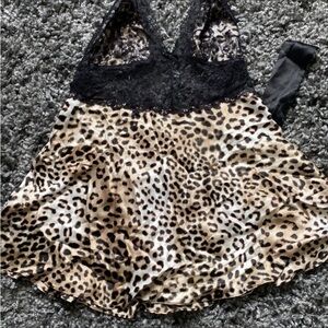 Victoria’s Secret Leopard Print Lace Babydoll Lingerie Slip Dress Size Large