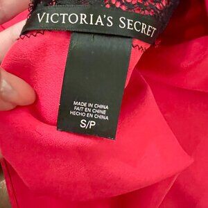 This very sexy Victoria's Secret nightgown of red satin and black lace features a plunging neckline and a plunging back. Adjustable straps and lace trim.