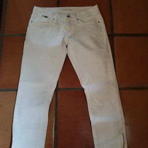 Victoria's Secret London Jean White Capri. Zippers on back and both legs. Worn once. Zero Yellowing..pure white. Washed&Pressed& Ready to wear! Excellent condition preowned by me!