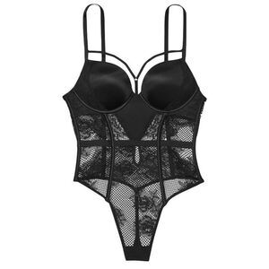 Victoria’s Secret NWT Bombshell Fishnet Floral Teddy Black XS