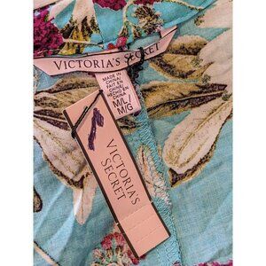 This Victoria's Secret open kimono is perfect for any casual occasion. The blue floral pattern adds a touch of summer, fall, or spring to your outfit. The relaxed fit make it comfortable to wear, while the pullover closure and machine washable garment care make it easy to maintain. Made of 100% viscose, this kimono is a great addition to any wardrobe. The size M/L fits regular women's sizes. The piece features an open front design and is branded by Victoria's Secret. Perfect for any woman who loves flowers, this kimono is a must-have for your collection.