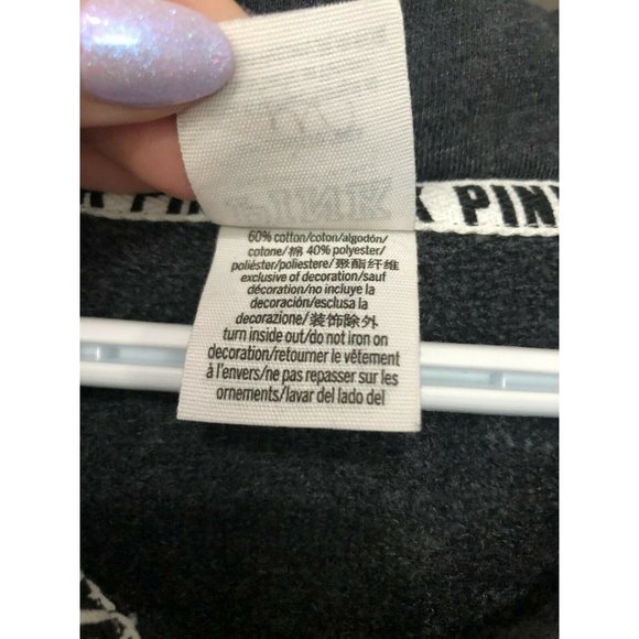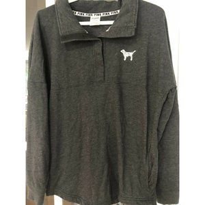 Victoria's Secret PINK 1/4 Button Sequin Pullover Women's SMALL Gray Dog Shirt