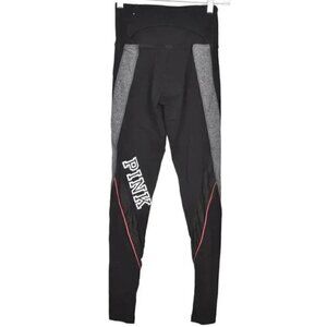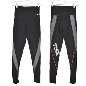 Victoria's Secret PINK Black High Waisted Black Grey Yoga Leggings Logo XS