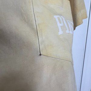 Victoria's Secret PINK Oversized Short Sleeve Campus Tee in faded yellow with a front pocket on the left side of the chest