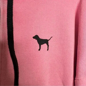 Pink in colour with black PINK branding on sleeves as well as PINK dog logo on front.