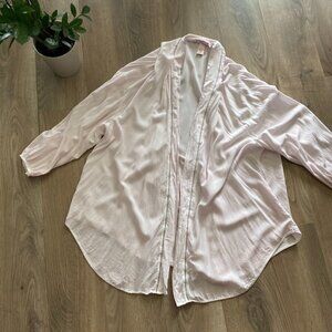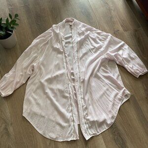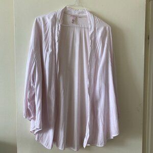 Victoria’s Secret Pale Pink Cotton Robe with crochet trim and cinched/ balloon sleeves. In excellent condition with no visible flaws or defects (tears, stains, damage, pilling). Great for lounging!