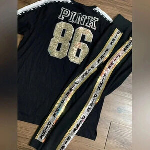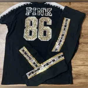 Victoria’s Secret Pink 86 bling Shirt/ Yoga leggings Outfit set M