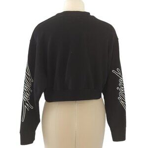 This is a black cropped sweatshirt with PINK logo sleeves by Victoria's Secret's Pink line.