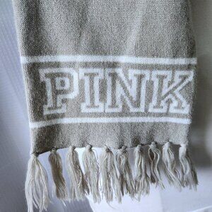 Victoria's Secret Pink Fashion Scarf Thick Warm Knit with Fringes Grey and White