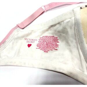 Victoria's Secret push-up bra in size 38DD, featuring a stylish gray, pink, and white cheetah print. Padded cups with push-up support for enhanced shape. Adjustable straps and back closure for a customized fit.