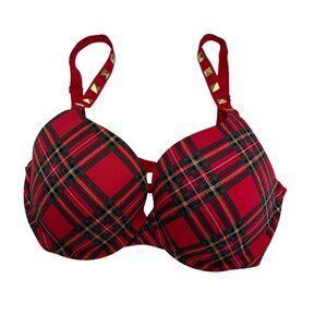 Victoria's Secret Push-Up Full Coverage Wireless Plaid Bra Vermillion Red 34DD