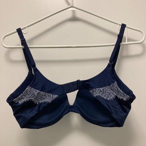 Victoria's Secret Push-Up Women 34C Bra Blue White Lace Accent