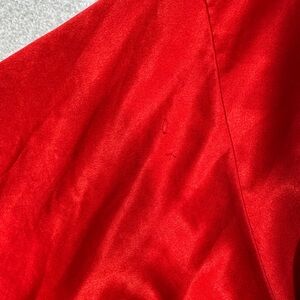 Luxurious red satin robe with a tie waist and pockets. Ideal for relaxation and elegance.