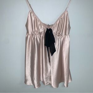 Victoria’s Secret Silky Babydoll Top Size Medium Lingerie Light Pink Black Bow