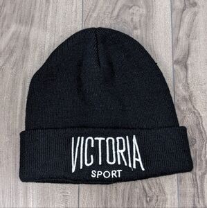 Victoria's Secret Sport Black Toque Beanie Hat Winter One Size