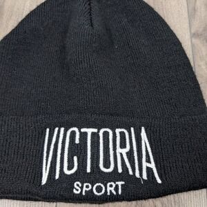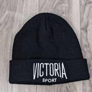 Victoria's Secret Sport Black Toque Beanie Hat Winter One Size