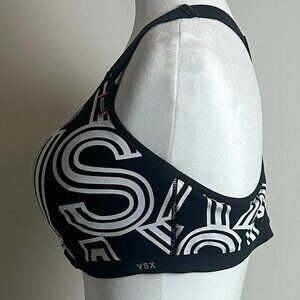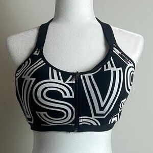 Victoria’s Secret Sport Bra – Black & White Logo Print | Zip Front | Size 38D