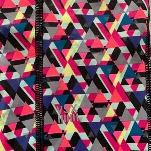 Brand new, never worn without tags! Super unique VS Sport knockout tights with a multicoloured pattern. The silver triangles in the pattern are actually reflective so they would be great for night time and would be very visible. They are made with performance fabric with four way stretch and are full length tights.