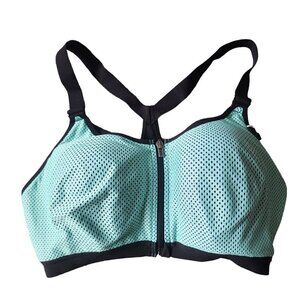 Victoria's Secret Sport Wireless Full Support Front Zip Bra Green Black 36DD (E)