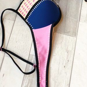 -Victoria's Secret surf crochet push up swim top with black cheeky bottoms.