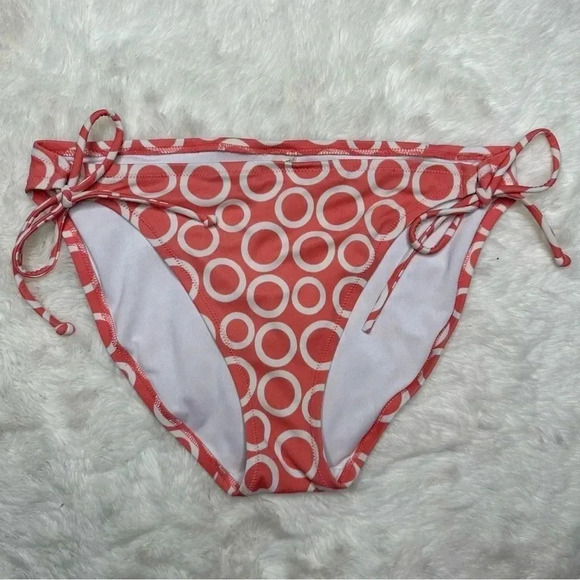 Victoria’s Secret Swim Bottoms Bikini Tie Sides Circles Peach & White Size Large