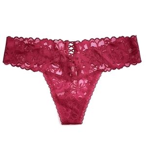 Victoria's Secret Thong String Red Wine Lace Panty Bottom Size Medium