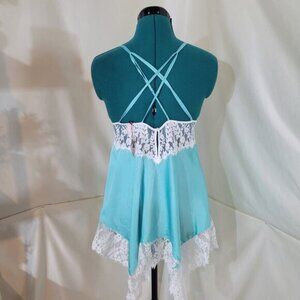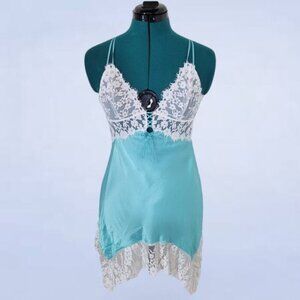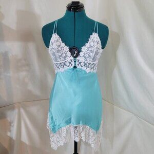 Victoria's Secret Tiffany Blue Satin Lace Bridal Chemise Slip - Size Medium