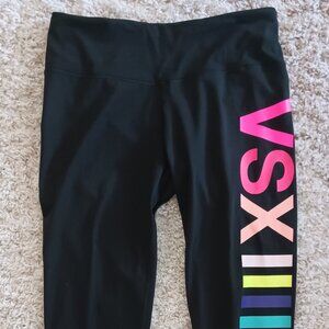 Victoria's Secret VSX Sport Leggings Logo Womens Large Black Workout Activewear