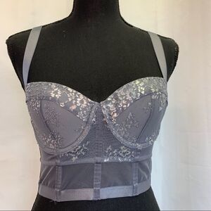 Victoria’s Secret Very Sexy Shine lace long line Balconet bra gray Sz 32C NWOT
