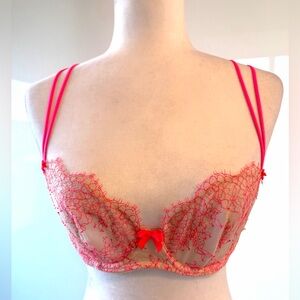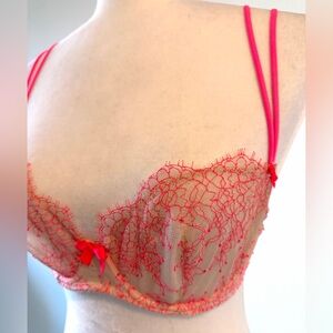 Victoria's Secret Vibrant Pink Lace Unlined Demi Buste Bra