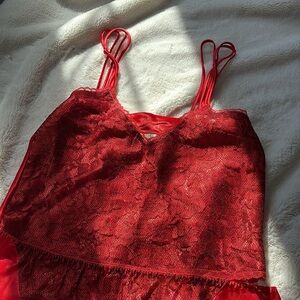 Victoria’s Secret Vintage Gold Tag Two Piece Red Satin Set Size Small