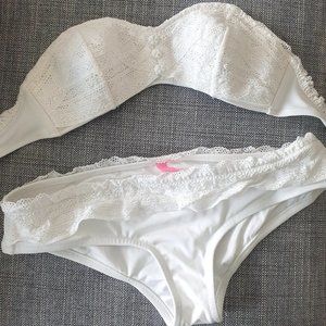 Victoria's Secret White Lace Bandeau Bikini Set - Small