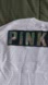 Trendy long sleeve tee with bold PINK logo. Comfortable and stylish for everyday wear. Signs of use, scalloped bottom. Fits like a snug medium.