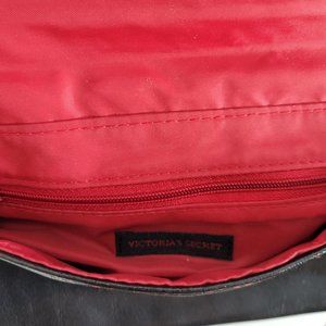 Victoria's Secret Women's Black Red Vegan Leather Mini Shoulder Purse Small Bag