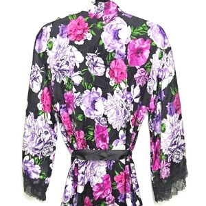 Victoria’s Secret XS Floral Lavender Purple Lace Kimono Sleeve Belt Satin Robe