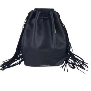 Victoria's Secret black bucket backpack with fringe, limited edition