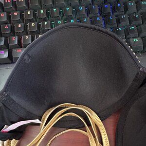 Victoria's Secret black gold silver diamonds embellished bra top 36B
