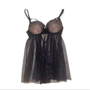 Victoria’s Secret black sheer baby doll slip top Push up bra