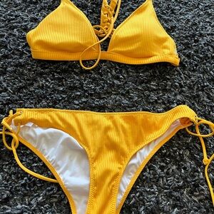 Victoria's Secret swim set PINK Ribbed Lace-Up Racerback Triangle cheekster, szL