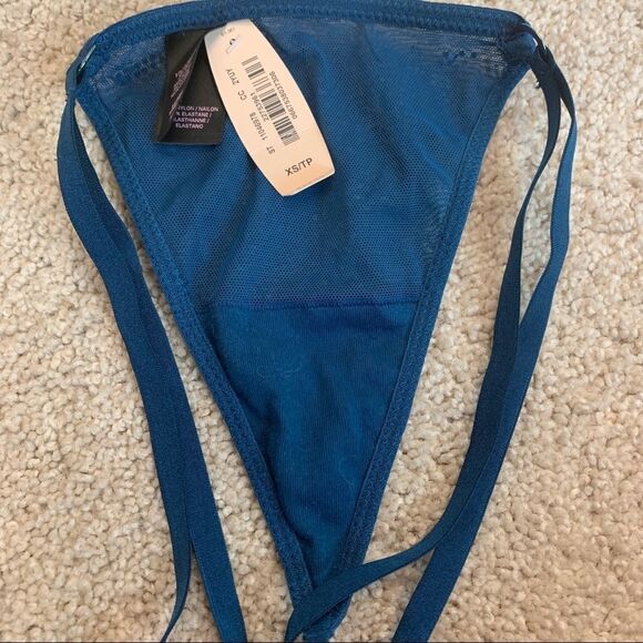 Victoria’s Secret teal blue green crystal rhinestone V-String pantie Sz XS NWT
