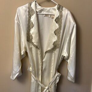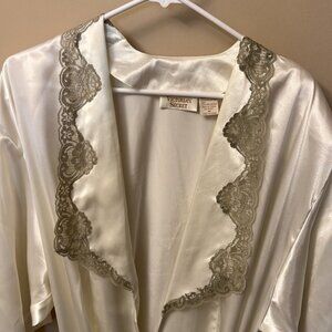 Victoria’s Secret vintage white full length satin robe M bridal lounge lace