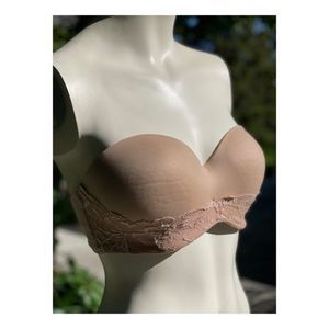 Victoria's Secret Body By Victoria Lined Strapless Bra Nude 34DD Lace Detail
