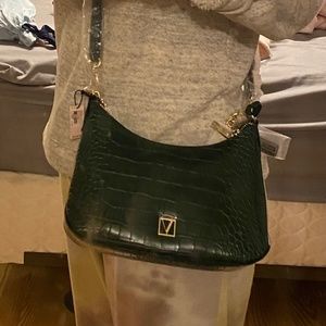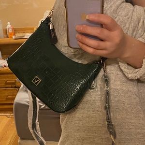 Fits cellphone, long wellet, key, a few cosmetic items it’s on sale Victoria’s secret’s right now. I am selling lesser.