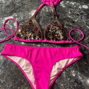 Victoria’s secret’s bikini triangle halter top L and bottoms M