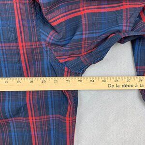 Victorinox Mens Shirt Large Blue Red Plaid Button Up Tailored Fit Cotton Nylon