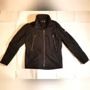 Victorinox brand is associated with quality and durability; this light weight Spring and Fall jacket is no exception. The front face is made of 81% nylon and 19% spandex for a stretch to fit "neoprene type" feel and the back is made of 87% polyester and 13% spandex. Sturdy zippers and stitching are hallmarks of the quality you expect from Victorinox.